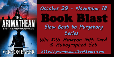 Vernon Baker, the Author of Slow Boat to Purgatory and the newly released book, The Arimathean, lives and writes on the shores of Penobscot Bay in Belfast Maine. For the last few years he and his family have spent the winters in the panhandle of Florida and it was there, three years ago, while writing what eventually became Slow Boat to Purgatory, that he decided to become a published author. Taking advantage of the changing landscape of publishing he decided in 2011 to independently publish his first novel. Slow Boat to Purgatory went on to become an Amazon.com bestseller both in the U.S. and the U.K. with over 10,000 copies in the hands of readers. His latest project is The Arimathean, the sequel to Slow Boat to Purgatory.