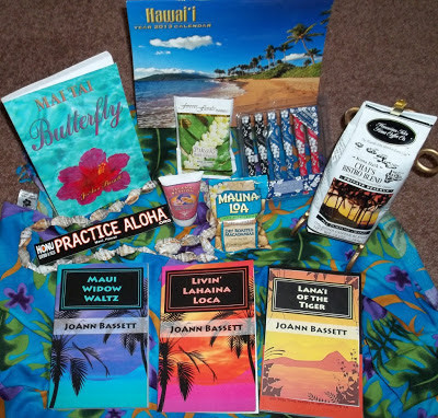 The author is giving away an Islands of Aloha Gift Box, with signed print copies of the first three books in the “Islands of Aloha Mystery Series” along with great Hawaiian goodies such as Kona-style coffee, special tropical tea, yummy bath products with paradise scents. It’s like a quick trip to Hawaii–without the annoying TSA pat-down!