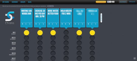 Now there's a great little site that's taken this idea and made an easy interface to help you keep your goals. Here a screen capture of mine. (a work in progress) The secret, in a nutshell, is to not break the momentum and every day you do you something you get to add another yellow dot.
