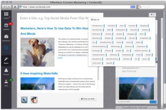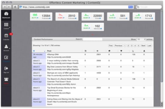 Content DJ also has a smart content recommendation engine designed to filter out the noise and serve you the most shareable content on the web. Similar to many other web monitoring programs, you can enter a keyword, brand name, or topic and see the relevant content currently getting the most engagement.
