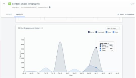 Lastly, the dashboard gives you easy access to your content analytics corresponding with your calendar. The insights tool shows you how many impressions each piece of content gets: clicks, engagement, and more.