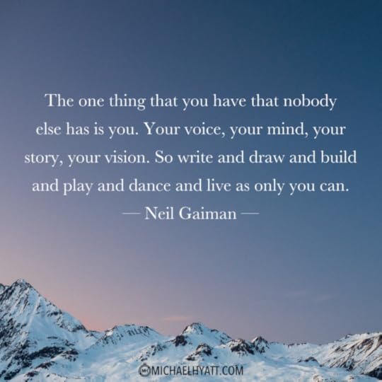 “The one thing that you have that nobody else has is you. Your voice, your mind, your story, your vision. So write and draw and build and play and dance and live as only you can.” -Neil Gaiman [Photo]