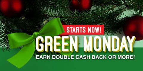 You can earn money while saving it during Green Monday! The Cashback Shopping site Swagbucks is offering big cash back - 2x or more - at a number of different stores today only . They're also offering big payouts on a varieties of different deals and offers from companies that would make great gift ideas. Get great deals without waiting in lines or even leaving your home!