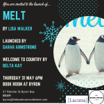 On Thursday May 31, Author Sarah Armstong will be launching ‘Melt’ in Byron Bay, with a Welcome to Country by Delta Kay. This is a free event (with drinks and snacks! )