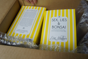 Monday was a very exciting day. A box of my new book ‘Sex, Lies and Bonsai’ arrived on my doorstep. So excited, so very, very excited. I felt like a kid on Christmas Day. And – this is probably going to sound a little pathetic – I took myself off to bed to read it. Yes, I have read it before… But not in a book!