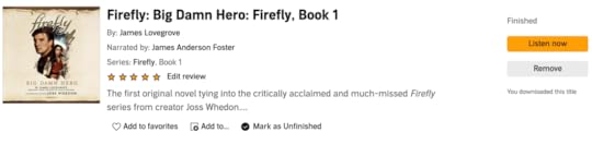 I wasn’t sure what to expect when I decided to pick up James Lovegrove’s Firefly: Big Damn Hero as an audiobook. That uncertainty and fear of disappointment directly led to the title sitting in my Audible library for an extended period before I chose to give it a listen.