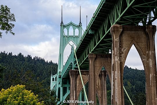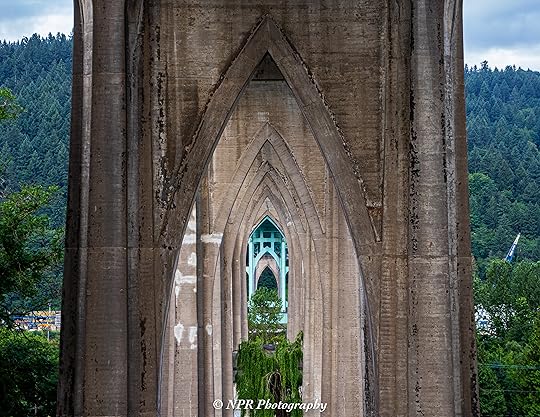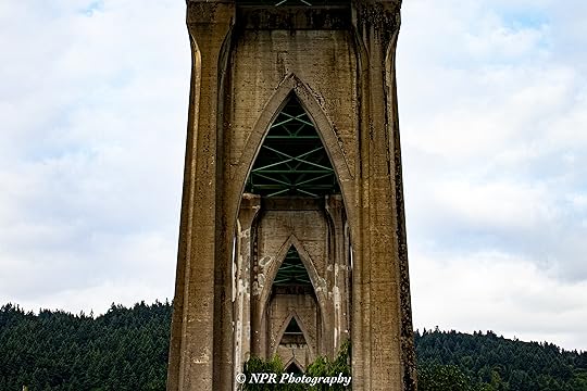We spent a little over half an hour enjoying a walk through the park and admiring the outdoor cathedral appearance of the gothic arches supporting the St. John’s Bridge as it traverses the Willamette River. A couple of homeless men with bicycles and small trailers to be towed behind said bikes congregated beneath one of the arches and, if I’d had the presence of mind, I would have liked to capture some images of them where they rested at the base of those columns. I’m not sure that they would have been amenable to being photographed, but I really should have asked.