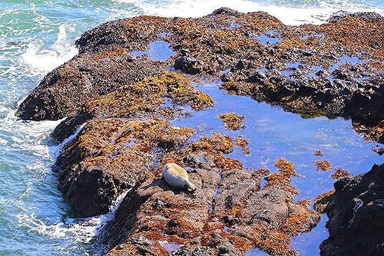 We headed back North along the Oregon Coast Highway, returning to Newport. Our next stop was for lunch. A little while before 1 PM, we arrived at Asiatico Waterfront Fusion Sushi. We opted to dine outdoors on the pier overlooking the Yaquina Bay. The food was superb, the service was no less so, and we had the pleasure of seeing some harbor seals poking their heads curiously out of the water to peek at us while we ate.