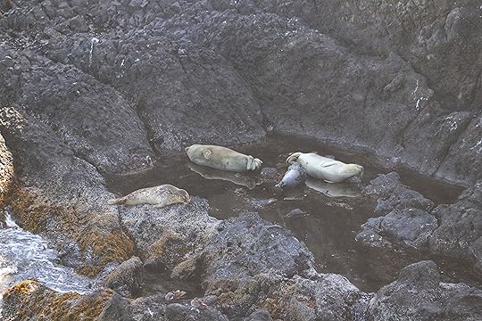 Perhaps the most worthwhile thing about our visit was the sheer amount of wildlife we got to witness. It wasn’t just the birds nesting on the rocky promontories all around. There were easily a dozen harbor seals playing in the surf, sunning themselves on the lower rocks, and even one mother nursing a pup…as you’ll see in the photos below.