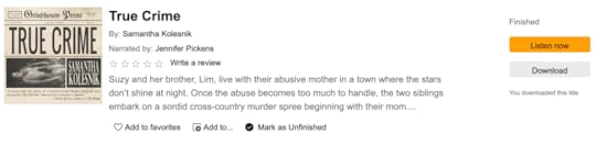 Samantha Kolesnik’s True Crime is a gritty deep dive into an abusive household and the horrible consequences of that abuse. It’s all the more awful for the plausibility of it.
