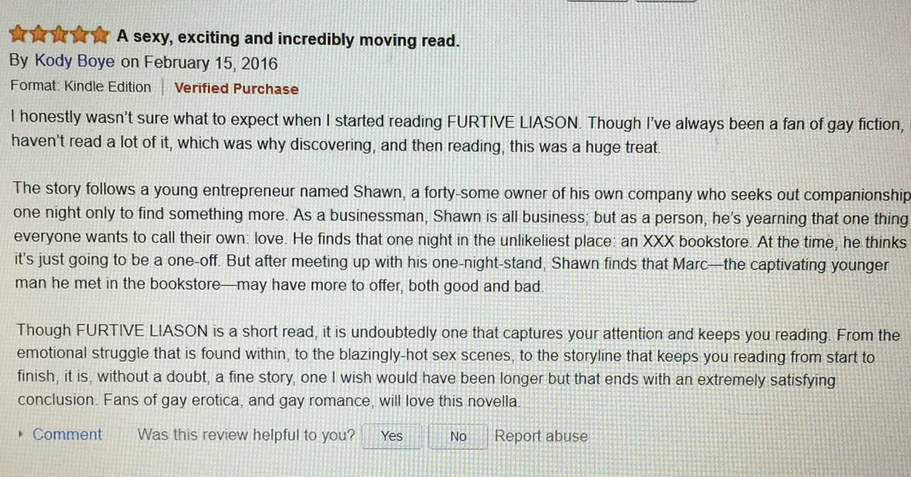 New 5 Star Review For Furtive Liaison! #kindle #gayromance