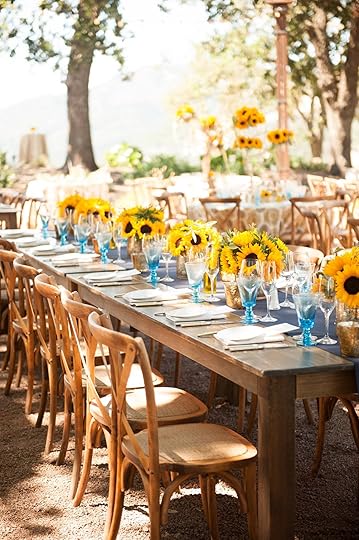 We have a special place in our heart for sunflowers (Evan brings me a bouquet of them every week--I know, we're nauseating), and we wanted them to be the only flowers at the wedding. Everyone thought this idea sounded crazy, but our wedding planner Ali Diluvio and Anita from Wine Country Flowers made it work perfectly, by pairing the sunflowers with blue glassware and rustic yet refined decor.