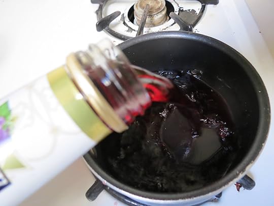 We're making a syrup here. Yep, that's right: we're making cloyingly sweet Manischewitz even sweeter (trust me).
