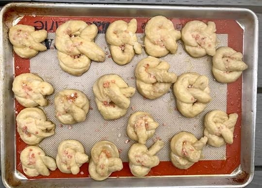 Onto a baking sheet they go, topped with a thick coat of melted butter.