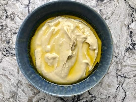Don't forget the extra olive oil to garnish. No, this is not a low-fat food. Don't ever bother with a hummus that claims to be low-fat!