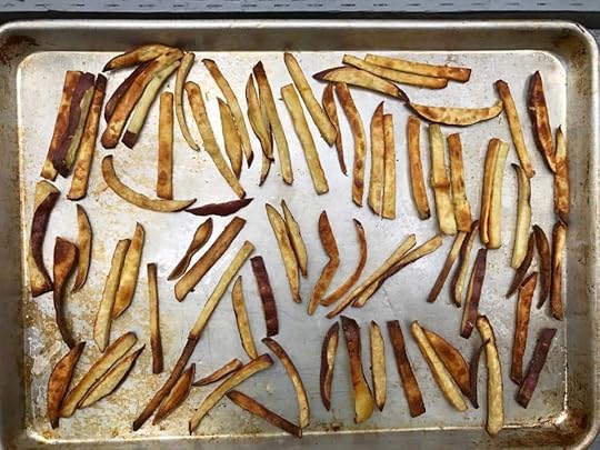 I toss them in olive oil, sprinkle them with salt, and bake until they get brown and crispy. Then I let them cool--do not skip this step! It helps make them crispy.