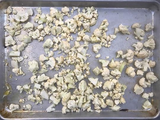 It's not exactly Easy Mac, but it's not much harder. Start with cauliflower cut into smallish florets--ones about the same size as the pasta you're using. Toss them with olive oil and a touch of salt (be careful with the salt in this recipe, as each element gets salted individually and the cheese is salty--taste as you go.