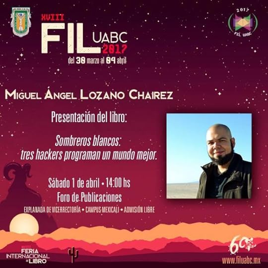 La invitación es para el día de mañana, primero de abril, a las 2 p. m. en el foro de publicaciones de la Feria Internacional del Libro, en Mexicali. Los espero ahí y podrán llevarse un ejemplar autografiado.