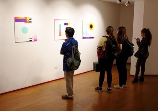La inauguración se llevó a cabo el 24 de septiembre. Durante ésta, uno de los asistentes, el escultor José Luis Morales, sacó unos lentes polarizados de su mochila. Se utilizan para ver video tridimensional en algunas televisiones y pantallas de cine. El efecto de ver las obras con estos lentes fue sorprendente: los colores se salieron del lienzo, y las figuras parecían estar a diferetes profundidades. Varios de los que estábamos ahí nos turnamos para ver el efecto que, por supuesto, no es exclusivo de estas pinturas pero es interesante tomar en cuenta por si gustan llevar un par y apreciar este efecto.