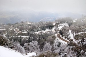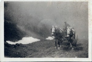 Over 100 years since Elsie wrote that winter tale , the fifth generation was on Palomar enjoying a winter wonderland. Joshua is Elsie’s youngest great grandchild. I posted a picture of his truck in the snow. What took Elsie a full day via horse and wagon (from Temecula to the mountain top) took Joshua less than an hour. I added a picture to show the winding mountain road, now paved and maintained. The sign beside Josh says “Since 1904.” I spent several days working on the next book and wanted to share with you a little excerpt of this winter story she wrote. The pictures at the top are Alice & Elsie and her father Alonzo Hayes driving the wagon up Palomar.