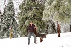 Over 100 years since Elsie wrote that winter tale , the fifth generation ( our youngest son Joshua) was on Palomar enjoying a winter wonderland. Joshua is Elsie’s youngest great grandchild. I posted a picture of his truck in the snow. What took Elsie a full day via horse and wagon (from Temecula to the mountain top) took Joshua less than an hour. I added a picture to show the winding mountain road, now paved and maintained. The sign beside Josh says “Since 1904.” I spent several days working on the next book and wanted to share with you a little excerpt of this winter story she wrote. The pictures at the top are Alice and Elsie in the snow and her father Alonzo Hayes driving the wagon up Palomar.