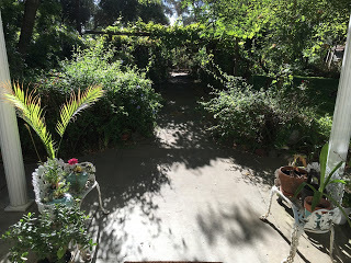 Out my mom's front door. I grew up in a 1904 farmhouse that's had all kinds of random changes and additions so that it looks very different, but the garden is amazing, and my mom spends a lot of time and energy making it look great.