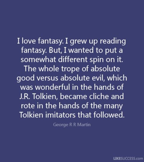 Other tropes that tend to crop up in fantasy and science fiction are the classic good versus evil battle. I mean, isn't that the basis of about every novel you've read lately? :) Okay, maybe not every, but it's certainly pretty prevalent. I keep thinking of Harry Potter and it's abundance of use of these ideas: the Hero, the good versus supreme evil, the quest to find the missing object that will defeat the evildoer, and many times the Medievalism that's used in some shape or form (helllo Hogwarts). This forms the foundation for so many worlds in the fantasy realm that I'm sure we can all think of plenty of examples.