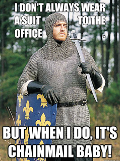 That's right! The business suit. Out to negotiate business? Take the armor. And the shield. And beware flaming arrows.