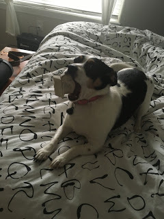 I have a birthday coming up on Saturday, and to be honest, I'm having a bit of a freak-out about it. There have been a few birthdays before this where the number has kind of hit me hard, but this one seems to be especially so. Yeah, I know getting older is better than the alternative (as my best friend is wont to tell me), but it still has been sticking in my gullet a little worse than normal. So, what's a lady to do? Share cute pics of her dog! :) Yeah, it's a picture post about Kate, my funny little rescue pup, because she cheers me up infinitely and hopefully she'll make your hump-day a little better too!