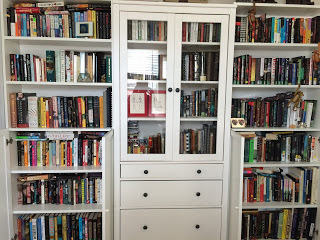 So, between it all, I managed to get my books all unpacked and into my new bookshelves. They are still in need of a bit more organizing, but they're all out of boxes for the first time in 3 years. And I am rather happy about that! Granted, I totally ran out of space and still have to figure out where I'm going to put my music and videos, but that's something I'll worry about later :) But, as I promised a few weeks ago, a few pics: