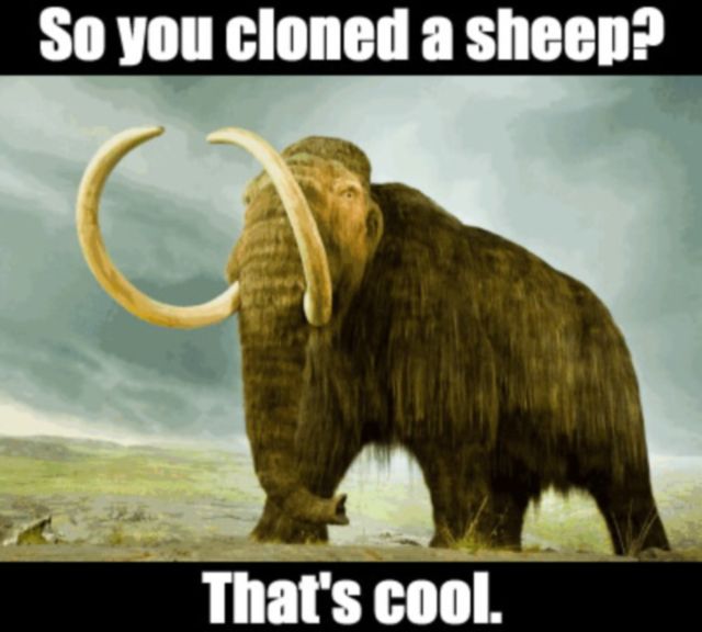 Okay, so say someone does manage to get all the mammoth changes incorporated into a genome, gets it into an egg, and it starts to replicate and grow. Those hurdles are pretty crazy hard already, but then it's necessary to get that egg implanted into a potential mother, and have her carry it to term. Anyone who is familiar with IVF knows this is hard enough in humans when the cells are our own--doing so between two species, and especially with species who have complicated reproductive timing, is even harder. We even know now that modern human mothers probably couldn't carry to term babies made with a Neanderthal father--their immune systems were incompatible. And humans and Neanderthals are super close cousin species!