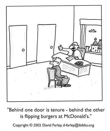 University of Montana (four months), after working here for nearly three years, and hopefully I'll have some news this week about whether or not I get a tenure line. What does that mean? Well, I've been a Visiting Assistant Professor for three years (basically an indentured servant--I teach twice the classes as everyone else, for half their pay), and tenure means I'll be a permanent faculty member and get to drop the "visiting." I'll get to finally get my own lab started, take on my own students (even though I've been doing this anyhow), and generally have a real "adult" job with some actual security. Well, at least a job that may allow me to make more than minimum wage. Might be kinda nice after years and years of school! ;)