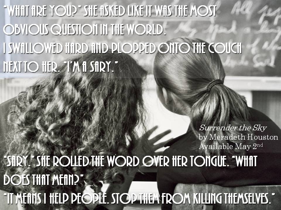 Happy Friday everyone! Just a few small things today: Surrender the Sky releases in exactly 3 weeks from today! (Woot! And a little bit of eeek! thrown in there for good measure.) I still have a couple of review copies up for grabs if you're interested. I'm putting together a giveaway for the reviewers who post within three days of my release, too, so if you want a head start let me know! Also, if you host a blog and wouldn't mind hosting me at some point, leave a comment or email please :) I'm always game for returning the favor! (And a million thanks to those who have already volunteered!)
