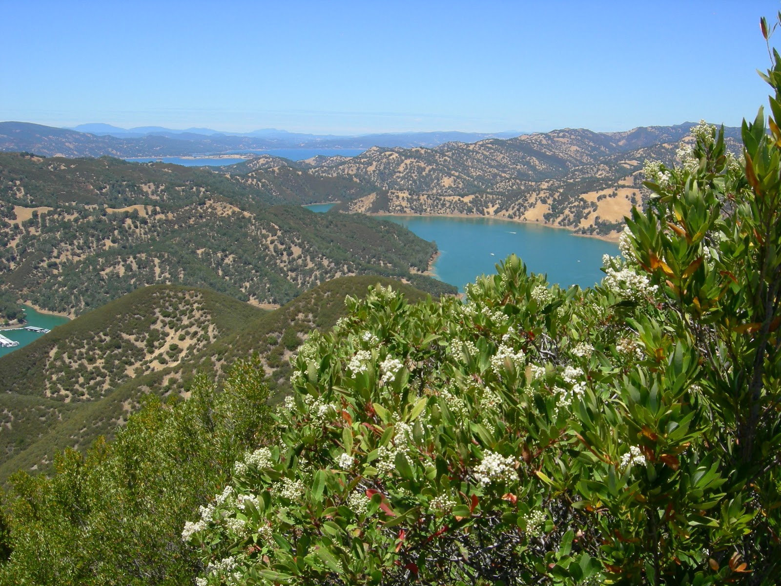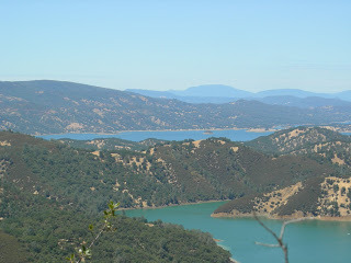 A couple of days ago, I agreed to let my little Mountain Man brother take me on a hike (and I'm *still* sore!). We decided to head up by Lake Berryessa, which is really close to where we live. I love this area, all its little creeks and golden grass with giant green oak trees. And the lake from the top of the giant mountain we climbed provided a spectacular view. These aren't great pics, but I thought I'd share. I was up there, totally getting in touch with my current WIP, which is set nearby :) Anyhow, a couple of photos of my pretty "backyard."