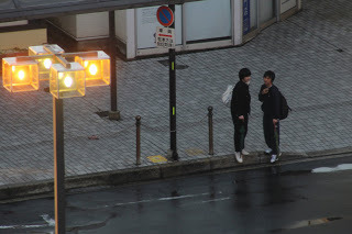 Today I was feeling all nostalgic and have spent a good deal of time going through photos. (Um, wow, do we have a lot!) Anyhow, I can't believe how many random ones we have of people on the street, or who are just randomly in our shots. Case in point, this photo, taken of two high school boys in Osaka, Japan :) Hubby took it, and it's pretty interesting I think.So, here's what I'm asking: tell me what they're talking about. I'd love to hear what you're imagination is inserting here! No prizes or anything, just the glory of creating your own meme :)