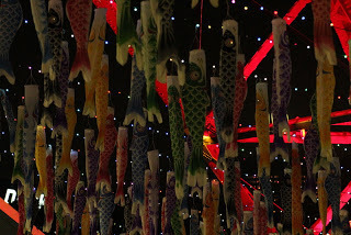 These koy are hung in honor of the boy's festival that was this week. There have been schools of them everywhere. I may have taken a lot of photos...