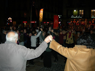 This isn't a great pic, but I had to share it because of what it depicts--last night while we were out listening to some live music in the square, several older people started doing this dance. And then more and more people joined in until there were 30+ people (all of them older) doing this little jig-like dance. It was awesome!