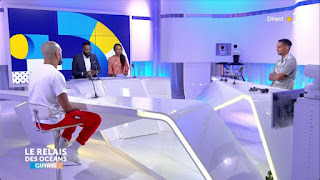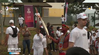 The TV station’s morning broadcasts omitted any live coverage of the flame arriving by boat in the village of Camopi at 0620 and its 1km journey through the town. The usual cameras and drones were on-site but their raw videography was edited down to an inadequate two-minute roundup repeatedly broadcast later in the day. The thrill of continuous live coverage had been completely lost. When the morning studio programme eventually started, it was led by a well-dressed man and woman (Nikerson Perdius and Geniale Attoumani) sat side-by-side at a desk covered in sheets of paper scripts. They appeared so under-confident that the man constantly shuffled their papers while the woman rung her hands. Occasionally, their eyes would meet with a look of ‘what the hell should we do next’. Instead of simply giving us the live feed of the flame, they viewed their role as interviewing their equally nervous two non-Olympic sportsman studio guests who used the airtime to complain about the lack of professional quality sports facilities locally. The studio presentation continued in this style for 90 minutes, repeatedly reading out the times and locations of the torch’s journey as if it were a radio show, but failing to show us more than sporadic visuals of the flame.