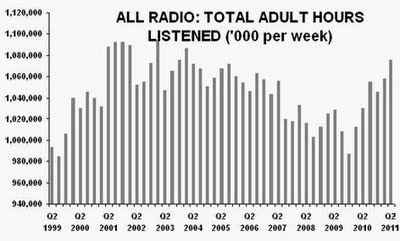 Far from radio losing its "analogue tradition," as the news article asserted, the old FM/AM platforms look, from these data, to be as strong as ever in the market.