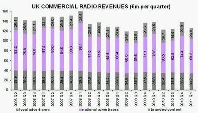 UK commercial radio sector revenues Q1 2011: local advertising hits 10-year low