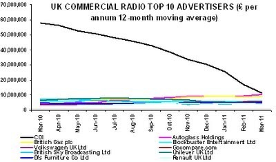 • the national advertising market for radio is shrinking so rapidly (down 34% in real terms between 2004 and 2010)