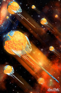 The mourners bounced through the atmosphere, buffeted by high altitude winds as they tumbled towards the planet’s surface. There were thousands of them. Gionsly was a peaceful planet, with just one, fairly small, continent. The Friss had made this pilgrimage for years now, ever since their neighboring planet had been struck by a plague. Their fellow Friss, Sll, had taken it upon itself to help, but the cost had been too high. It had died, spokes broken, after scattering the cure it made from its own body into the continental air currents.