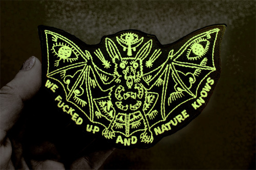 New patches now up at my webshop! The bat one has glow in the dark thread, the Don’t Care one has neon thread and the cow one has metallic golden thread. Made in the USA with iron-on backing!