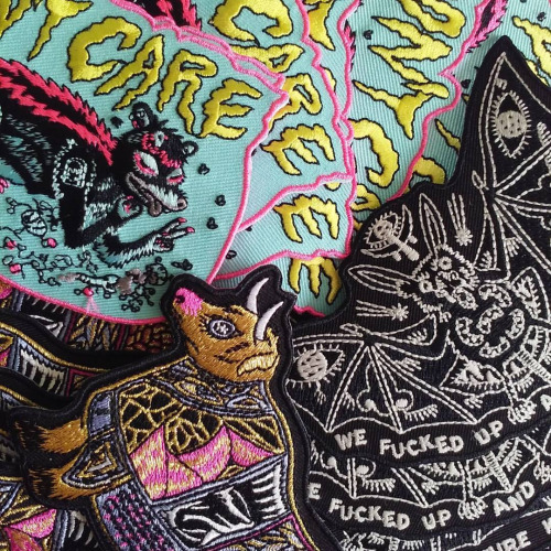 New patches coming this friday to www.gatosaurio.com✨ The skunk has neon thread, the cow metallic gold and the bat one glows in the dark