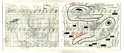 I drew these in Toronto 2013, bottom right page also has some drawings by Keith Jones and Michael DeForge and maybe Edie Fake?