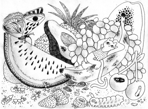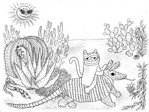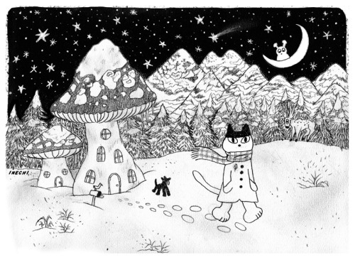 Ten of the twelve graphite illustrations I made for my 2016 calendar! They’re about this tiny cat who travels around the world throughout the year, and in comes back home at the end. I would love to see pictures from everyone who gets one and decides to colour it : )