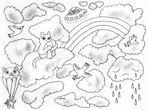 “Head in the clouds” one of the illustrations I made for my 2016 calendar / coloring book! Now available at my webshop : )