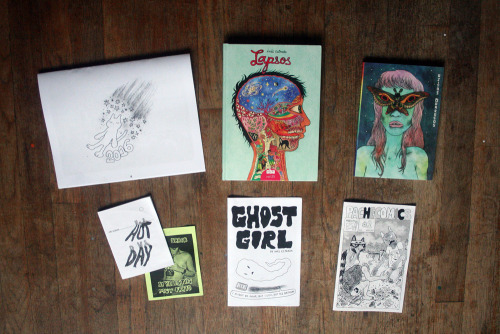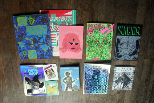 Here’s all the stuff I’ll have at my table (U26) at CAB this weekend! On the top are my comics and on the middle is all the mexican publications I’m distroing (from top to bottom, left to right) Zúngale, Santiago Solís, Conjuntivitis (Fuck Zines), Luiz Berger, Abraham Díaz (Ed. Joc Doc), Edwin Sandoval, Fanzinología Mexicana the anthology I co-edited about mexican zines, Apolo Cacho and Mou. And lastly, all the waterprooof vinyl stickers I’ve been making this year! Most of this stuff you can get at my webshop too, if you’re not coming to the fest. It’s gonna be intense figuring out how to fit all of this on my half table, on top of the tshirts and prints I’m bringing haha…… so yeah come say hi, check it out and get something!!!