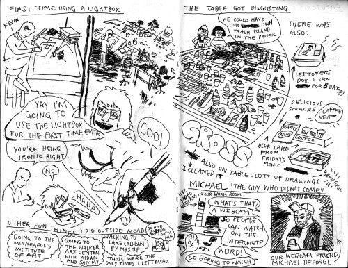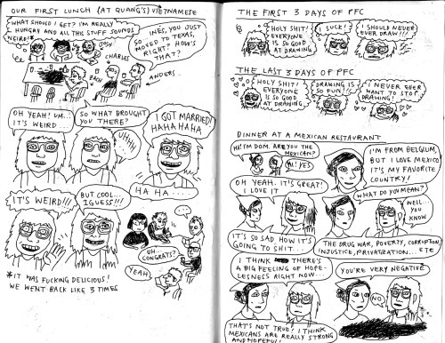 Some journal comics about my experience at the PFC residency. I did them all yesterday, as fast as I could (in the spirit of PFC) so I definitely left out some memories, and I also didnt get to draw everyone but hopefully you will still find them funny. I’m very grateful to have been part of this! On to more drawings and adventures!!!