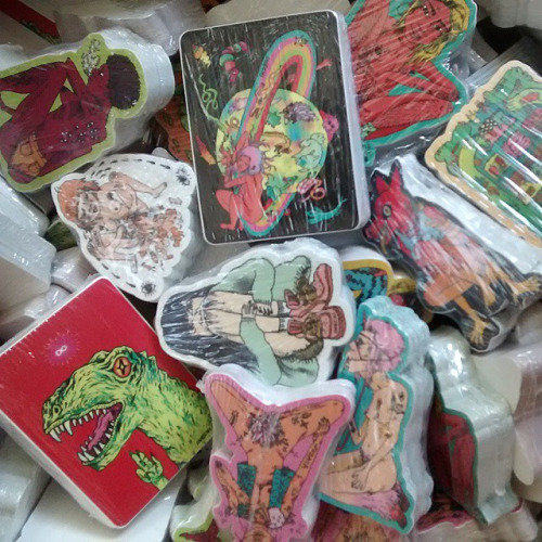 My Pin Oops stickers are now up at Gatosaurio! This is a rowdy gang of hot freaks that should not be fucked with! Printed in 100% waterproof vinyl with a matte finish, guaranteed to make all your stuff 1000x cooler ; )